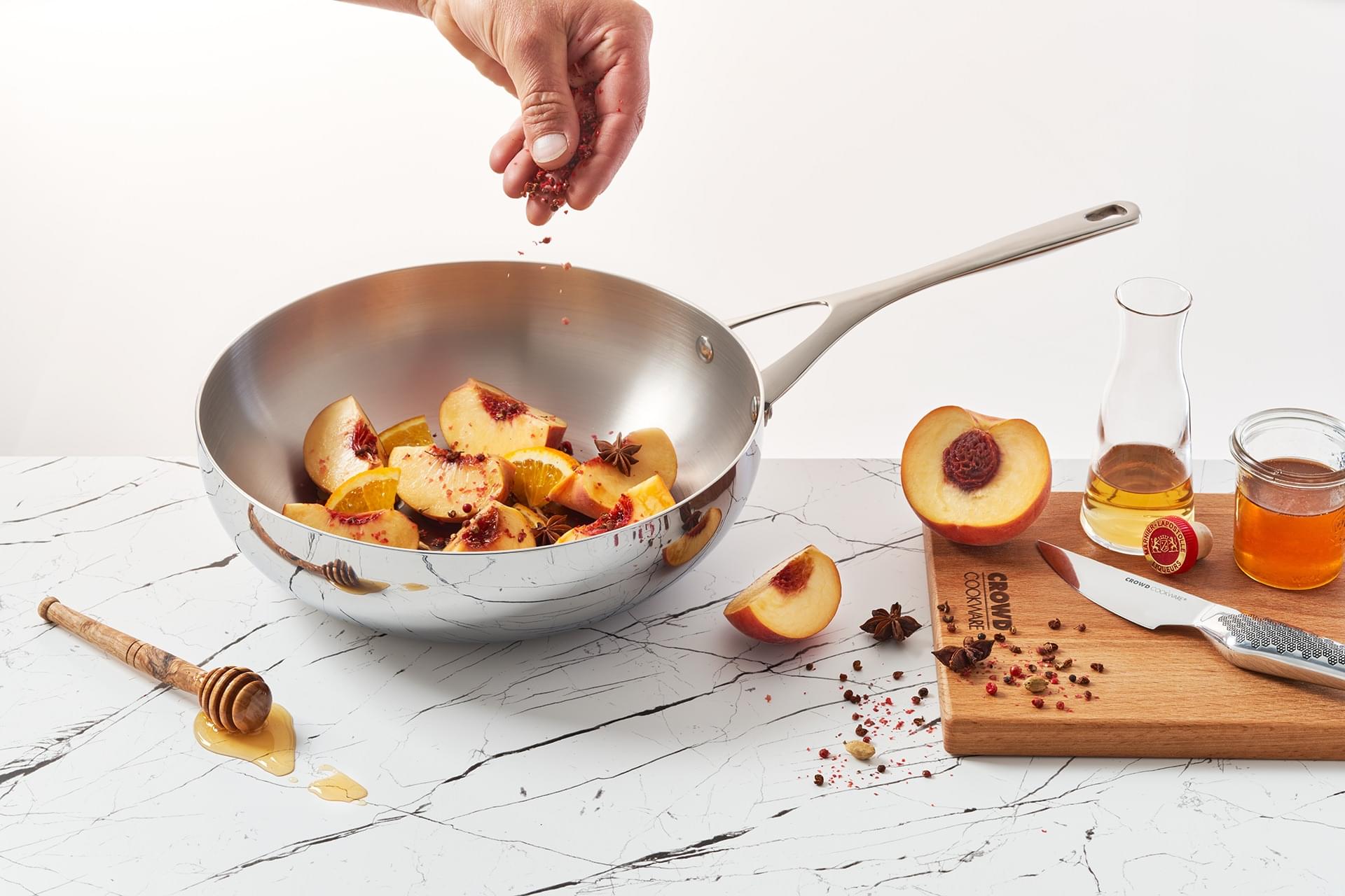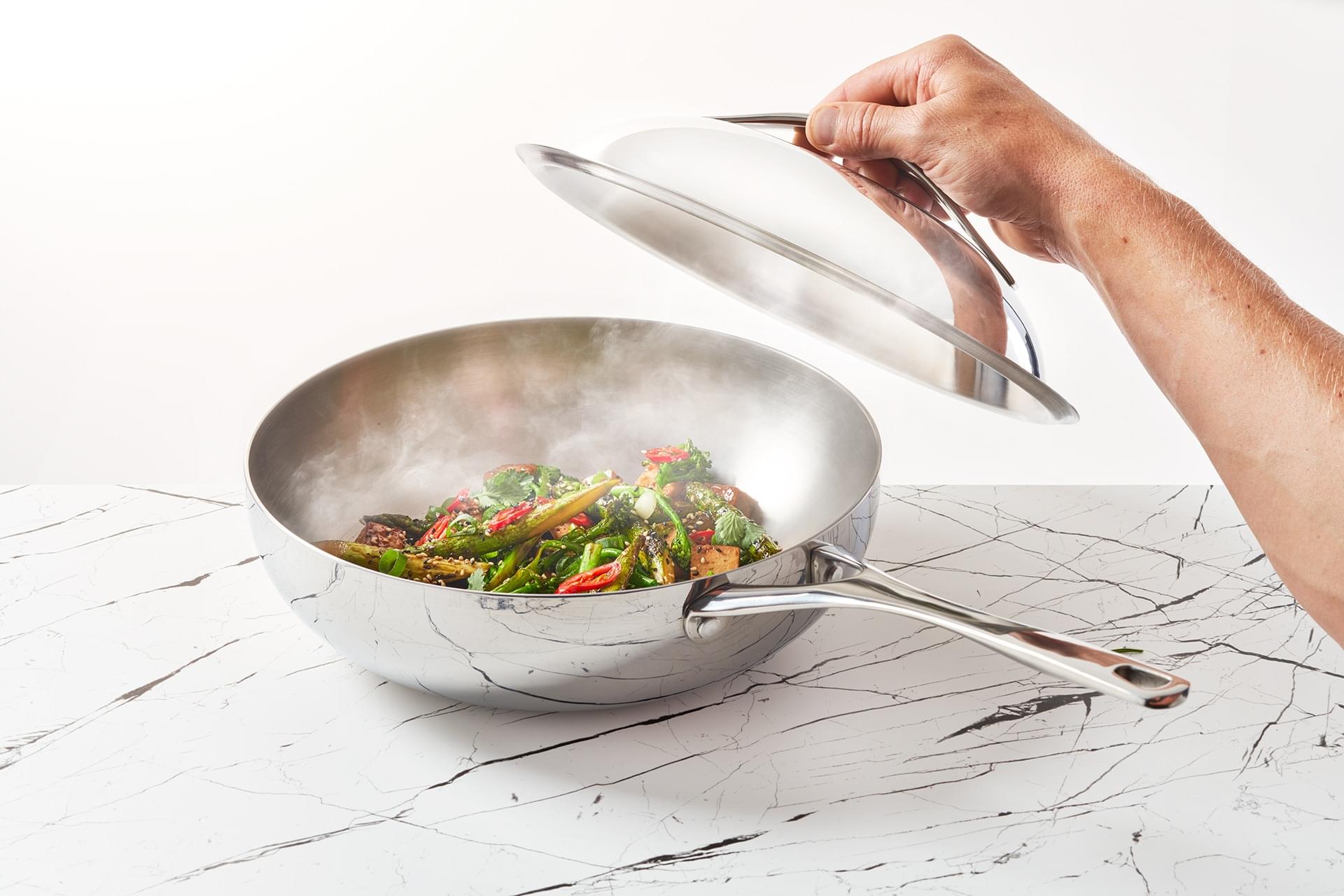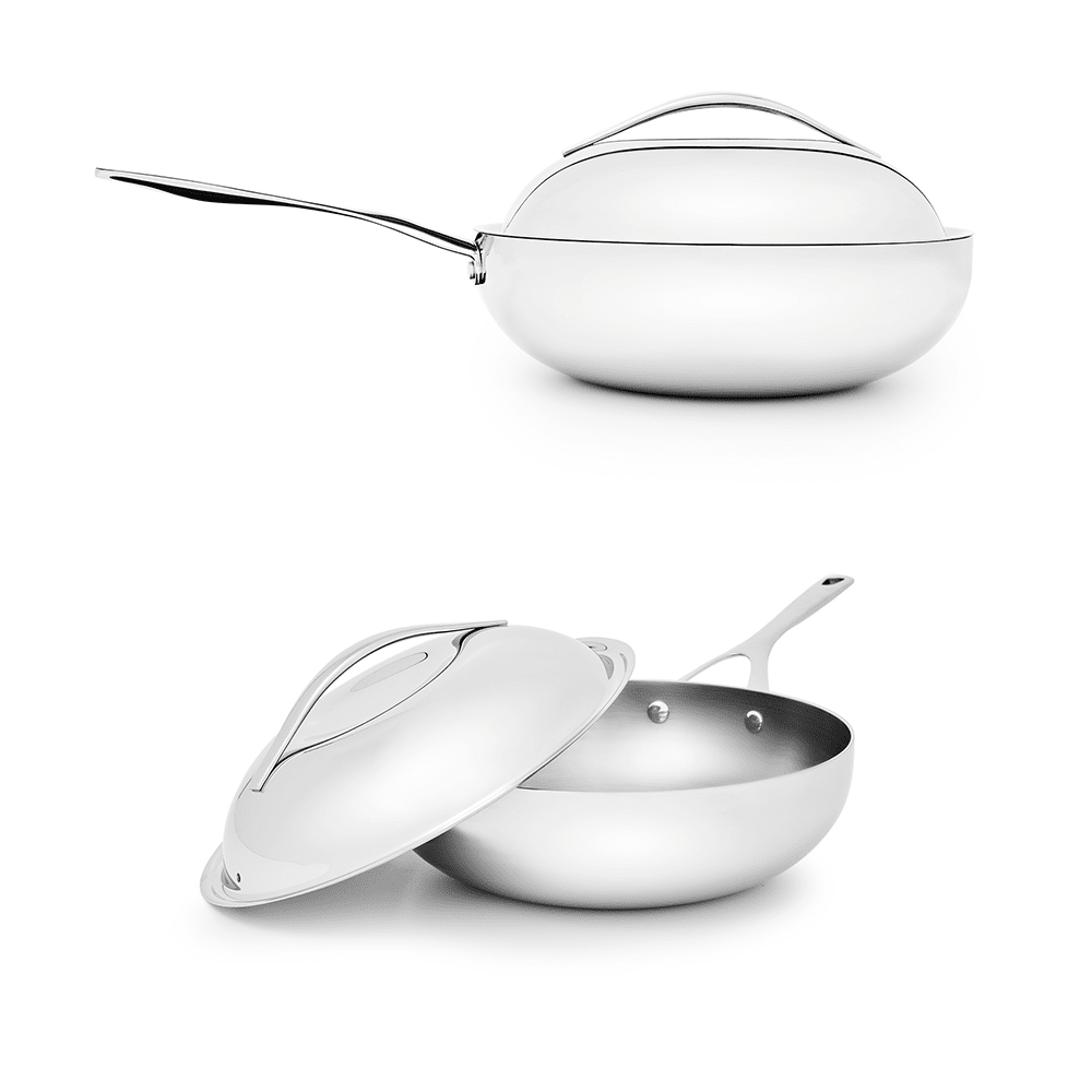 Perfect heat conduction: Since the Naked pan is made with a 5-ply technology, it requires minimal heating for optimal heat distribution, making the naked pan an energy efficient and a more sustainable option. It can be used on all heat sources including gas, induction, ceramic and electric or even put in the oven.